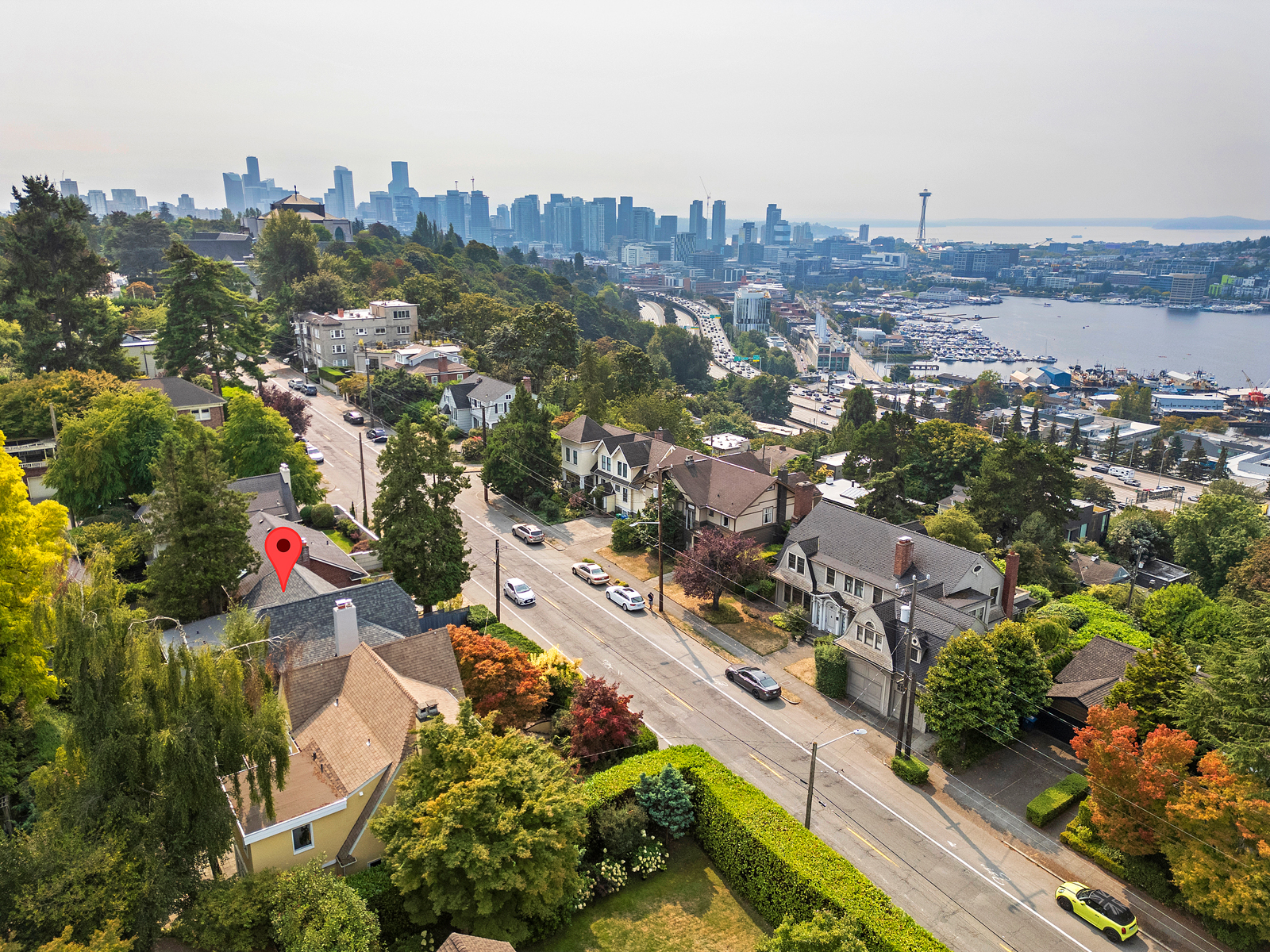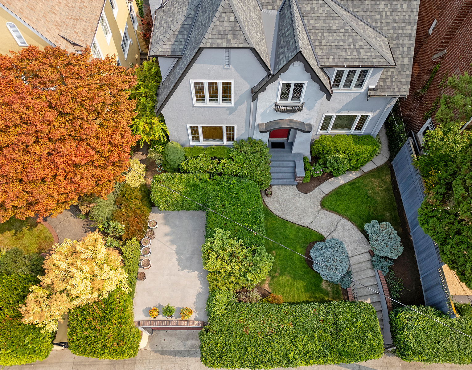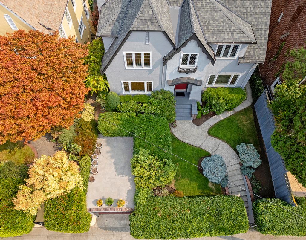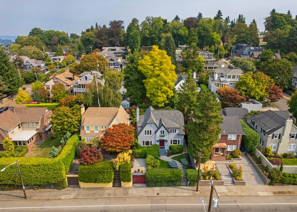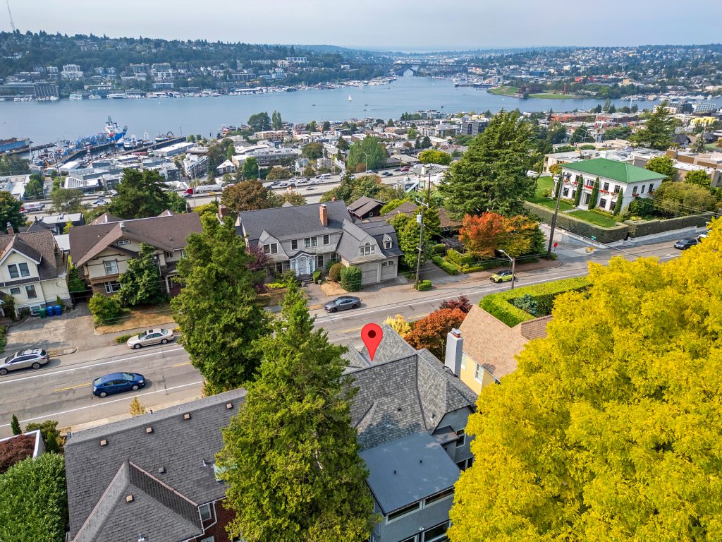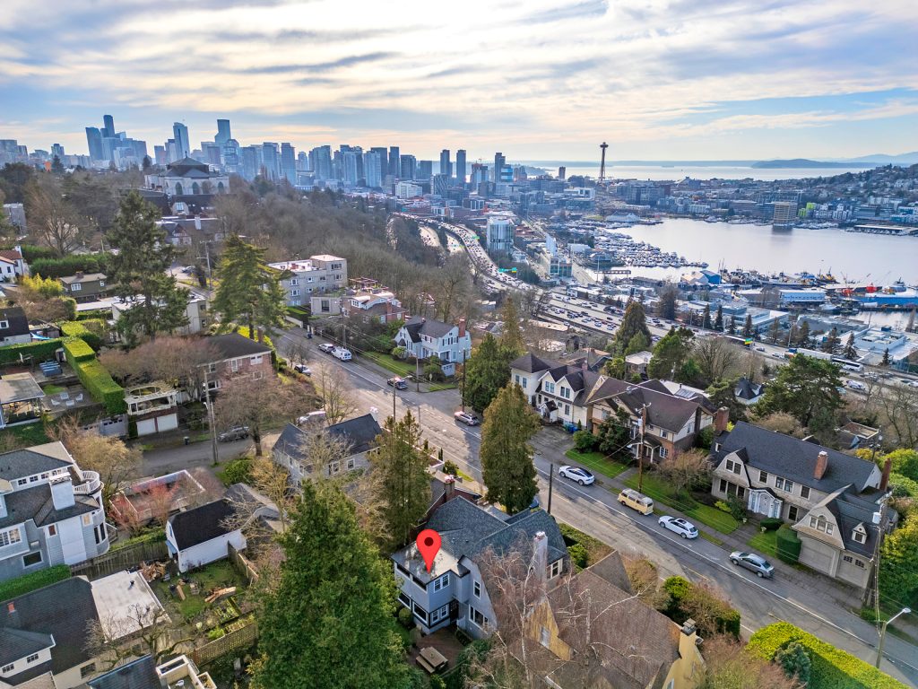 Perched in the heart of historic North Capitol Hill, this rare retreat blends timeless character with one of Seattle’s most coveted locations. Once owned by the Carroll Jewelers family, the home sits privately above the street, capturing Olympic Mountain vistas and Lake Union seaplane views while feeling worlds away from the city. Classic architectural details—Batchelder fireplace, leaded glass windows, oak floors, and French doors—anchor the space, while the expansive living room looks to the lush private English garden, perfect for entertaining or quiet evenings at home. An updated kitchen and sun-filled family room enhance everyday living. The primary bedroom offers a walk-in closet and adjacent to the tiled full bath with heated floors and is complemented by a junior suite with ¾ bath. The partially finished basement features a rec room with warm wood paneling, wine cellar and flex space perfect for an office, gym, or workshop. A new roof, refurbished deck, and one car garage with a rooftop perfect for container gardening round out this lovely property. Just minutes to Volunteer Park, St. Mark’s Cathedral, Broadway’s vibrant shops and dining, light rail, I-5, SR-520, and the iconic Blaine and Howe stairways, this is Capitol Hill living at its most connected.