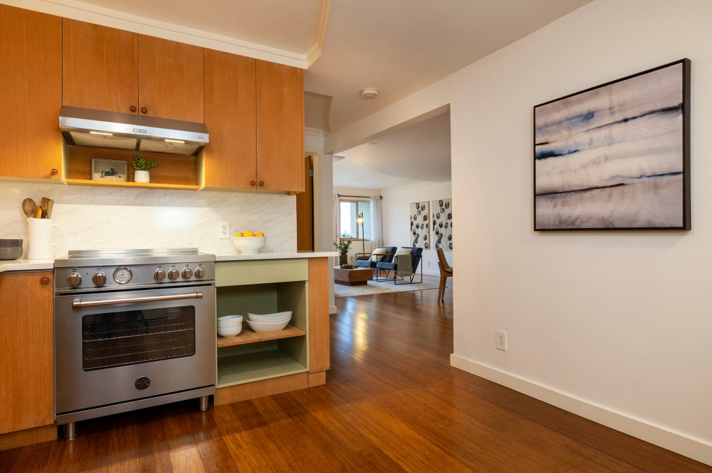 Strikingly handsome & fresh, this west facing North Capitol Hill condo exceeds expectations. Exceptional craftsmanship throughout, from solid-core Douglas Fir doors to custom cabinet fronts and tailored closet systems, creating a cohesive and elevated living environment. The ample kitchen, both elegant and functional, features high-end stainless-steel appliances, generous storage, and timeless finishes that reflect enduring quality along with a concealed laundry room.